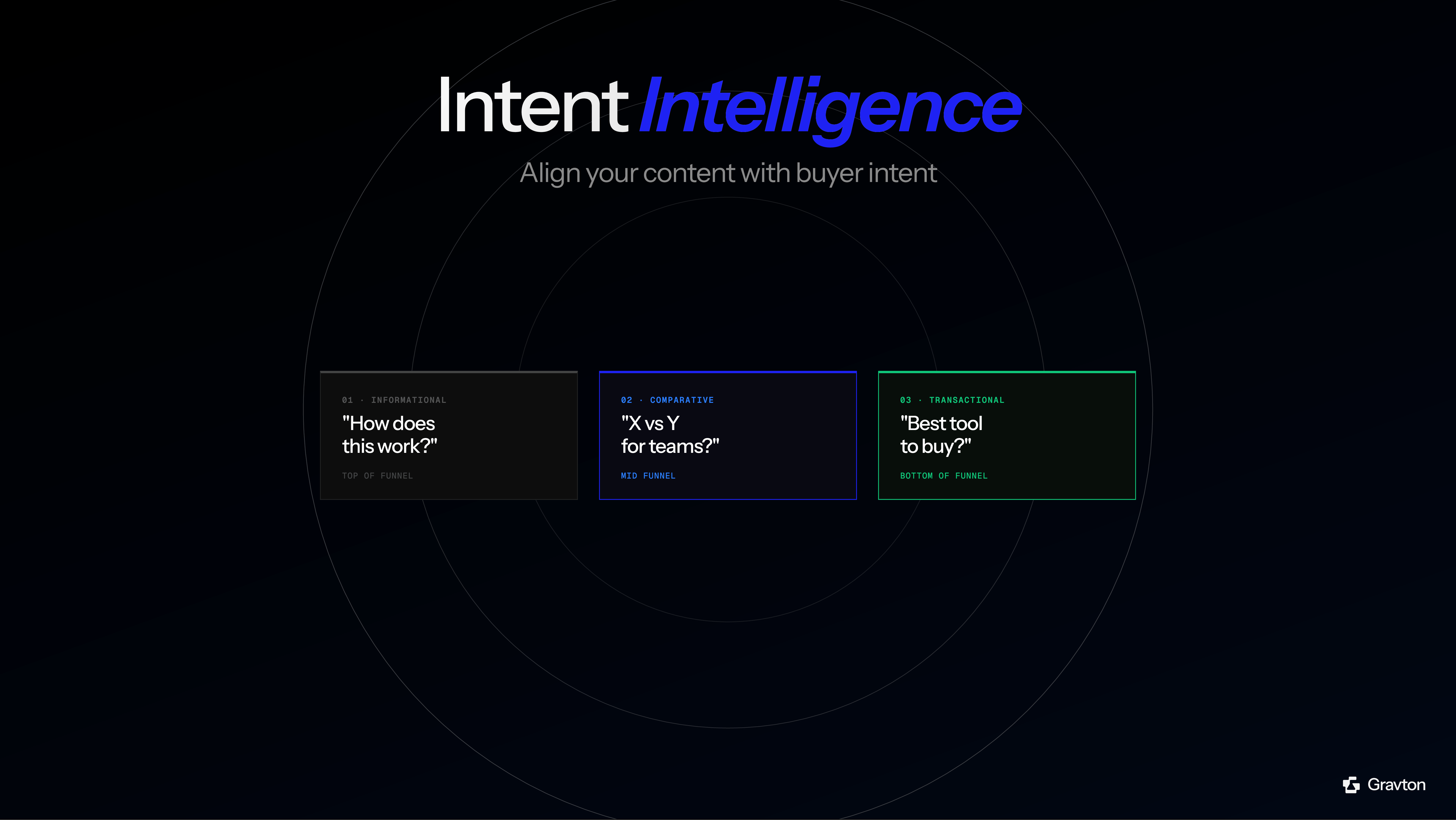 See the four types of intent, each reflecting a distinct user motivation and buyer journey stage.