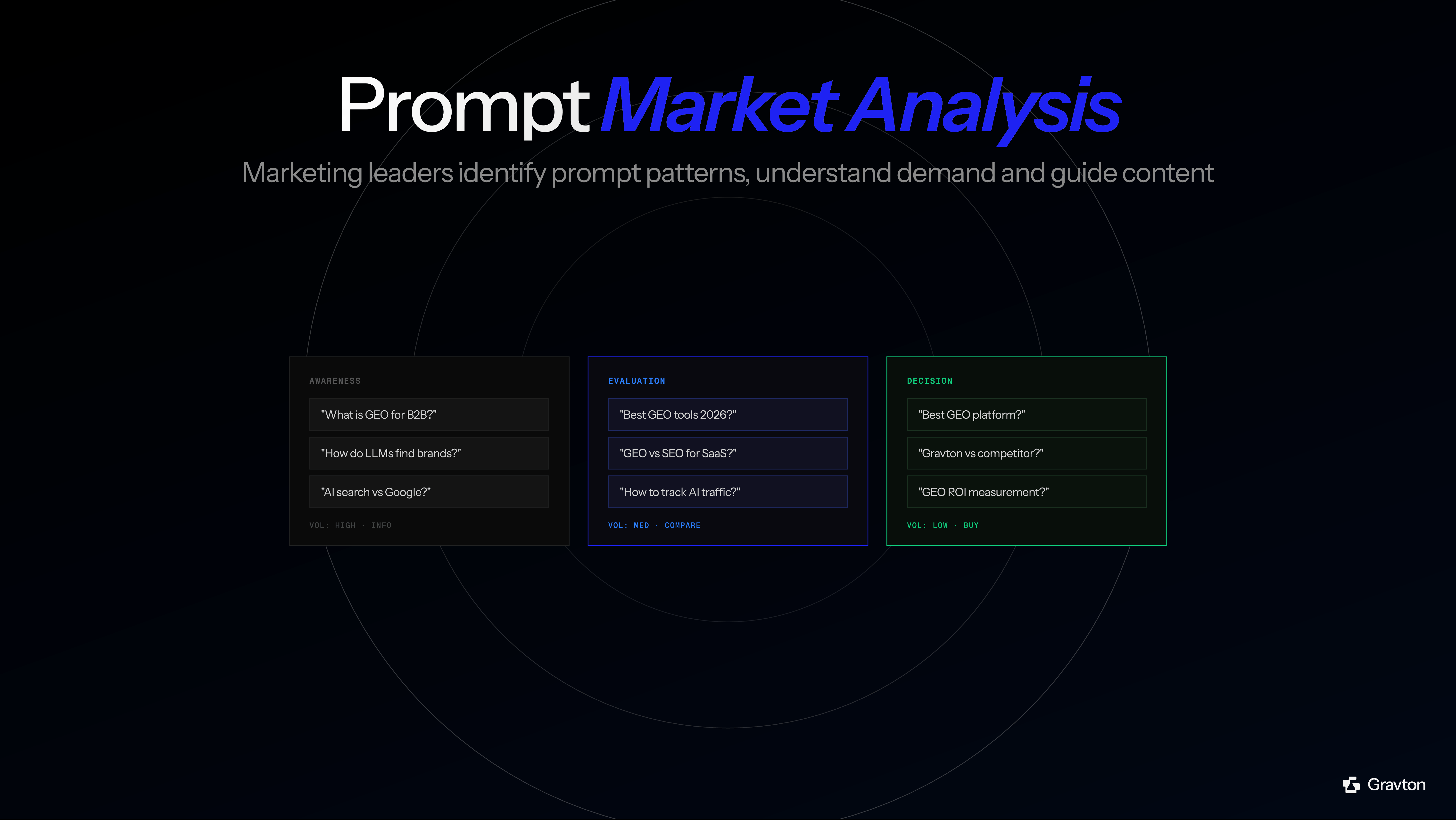 GEO does not operate on keyword rankings. It competes for intent clusters and presence within AI responses. If your brand isn't included in responses, it doesn't exist in that query space.