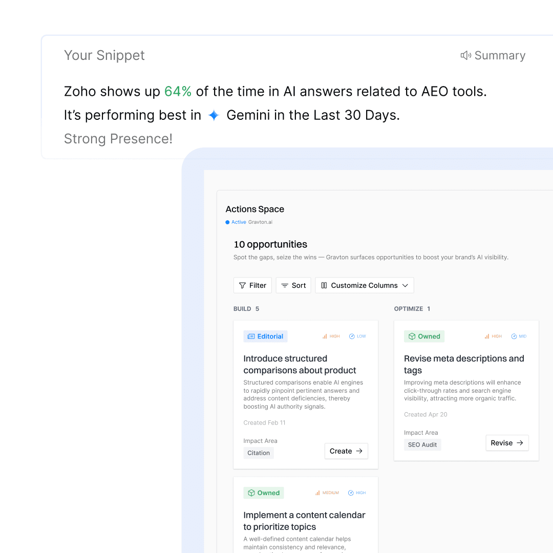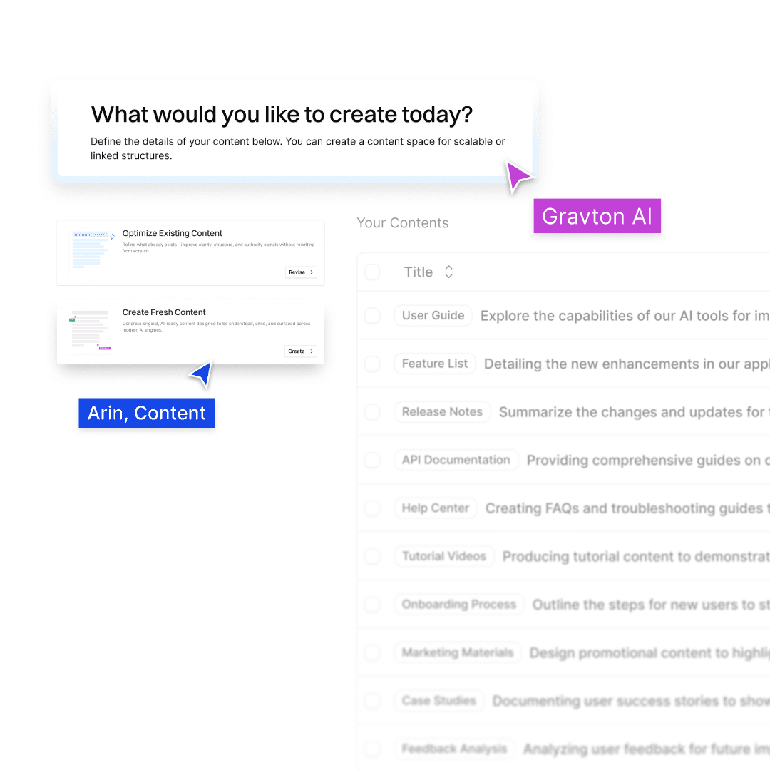 Precisely quantify visibility, calibrate brand voice with guardrails, and convert lost AI traffic. Single platform to orchestrate intelligent content workflows from discovery to revenue.